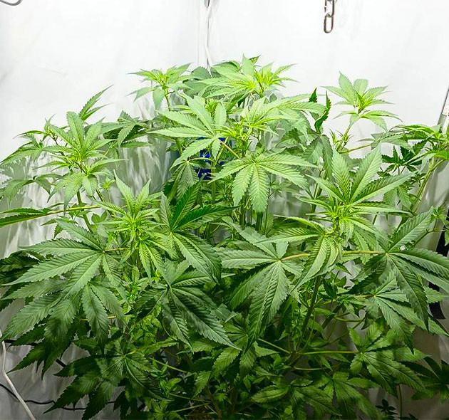 Кустик активно растет. Крона стала заметно гуще, новые стебли быстро сформировались, вытянулись и заняли свое место под солнцем. От горшка до макушек – 52 сантиметра. Условия в палатке стали лучше, температура опустилась до 28 °C, температура раствора такая же. Влажность – 65 %. Расстояние до ламп около 90 сантиметров. В палатке появился запах, не резкий, но весьма ощутимый. Раствор не менял, не добавлял, его показатели с датчиков остаются такими же: ppm 650, pH 5,8.