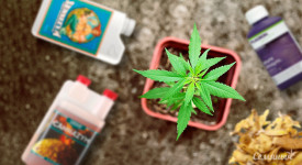 На восьмой неделе настало время для пересадки растишек. Один клон отправился в ведро DWC на 25 литров, второй – в тканевый горшок на 18 литров. С этого момента они переехали в гроубокс, где стоит свет HLG 260 W QB V2. Для растения в гидре использую набор от GHE: FloraGro, FloraBloom, FloraMicro, Diamond Nectar, Cal Mag + SuperThrive. Почвосмесь сделал на основе универсального грунта + органика от Gaiagreen: Mineralized Phosphate, Glacial Rock Dust и All Purpose.
