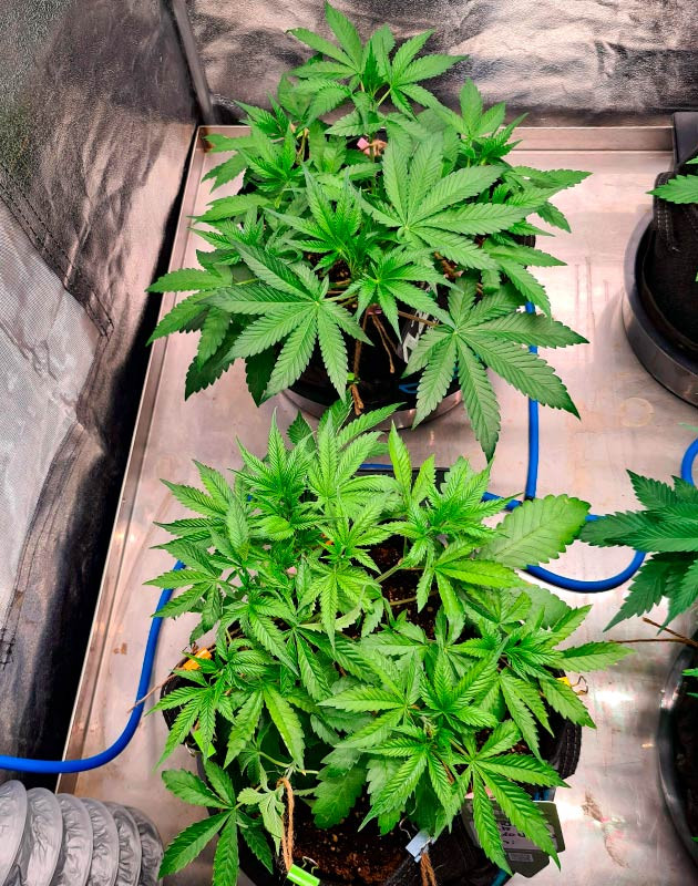 Cherry Cola Auto развивается просто замечательно. После LST веточки значительно вытянулись, после чего также были подвязаны-подогнуты в разные стороны. Получаются кустики с отличной открытой структурой и достаточно крепкими ветками. На этой неделе я удобрял растения один раз и дважды поливал чистой водой. Показатель ppm на дренаже – 300. Я не хочу сильно пичкать кустики удобрениями. Тем более никаких признаков дефицита не видно, развитие в норме. Судя по состоянию кустов, они скоро зацветут. Также на этой неделе я удалил часть листвы, по 3 пары с растения.