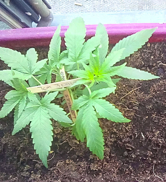 На второй неделе два черенка с самыми развитыми корнями были высажены в горшки объемом один литр. Укоренились они быстро, стояли под «куполами» из пластиковых бутылок. На 4-й день своей самостоятельной жизни я сделал им топпинг и снова накрыл. Саженцы довольно быстро пришли в себя, причем на одном из них сформировалось не два, а три новых стебля, эдакий Змей Горыныч. Ну что ж, так еще интересней. К концу недели их высота была плюс-минус 10 сантиметров. Лампа опущена достаточно близко к горшкам, на 25 сантиметров. Свет включен 20 часов в сутки.