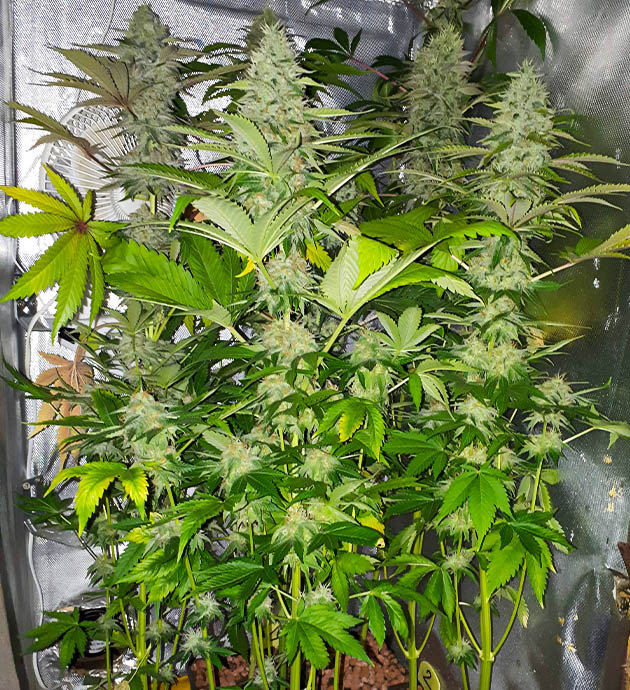 На восьмой неделе почистил нижние этажи от листвы и веток, чтобы кусты концентрировались на формировании шишек в верхней части. Поставил в бокс Ona Pro для нейтрализации запаха, так как аромат становится с каждым днём всё сильнее.