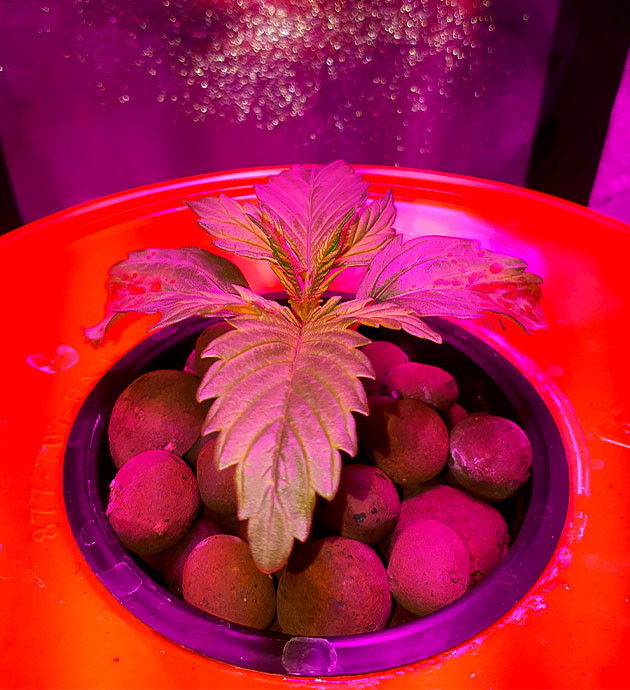 Что рассказать про первую неделю? Растишка стоит в таблетке, раскрыла семядоли, постепенно оживает, и к концу недели показались первые листики. Первые два дня стояла под стаканчиком, потом убрал и его. На данном этапе саженец в первую очередь формирует корневую систему. Чем быстрее корешок доберется до питательного раствора, тем быстрее начнётся активное развитие куста. Ну а пока наблюдаем за малышом, от меня практически ничего не требуется. Автоматика выставлена на режим 18/6, лампа висит в 40 сантиметрах от горшка. Температура в палатке 24-25 °C днём и 21 °C ночью, влажность в диапазоне 60-65 %.