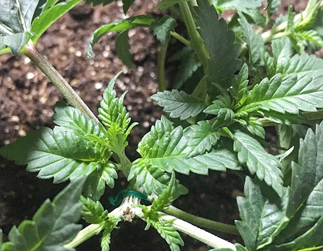 На восьмой день дал растению первую дозу удобрений в количестве ¼ от рекомендованной производителем. Использую Bio-Heaven и Bio-Grow от BioBizz. С началом формирования второго этажа отметил, что расстояние между узлами слишком короткое. В этой связи поднял лампу до 55 сантиметров от макушки, чтобы растение сильнее тянулось.