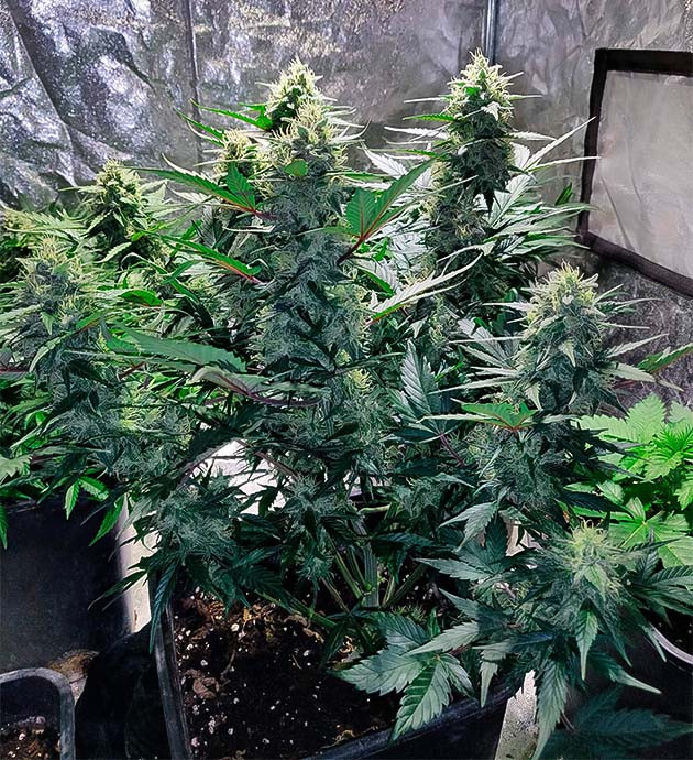 Автоцвет Zkittlez Auto – абсолютный топ. За 9 недель, конечно, он не созрел, но и 11 недель – это очень быстро. Не сомневаюсь, что в более комфортных условиях урожай бы я собрал быстрее. В палатке было относительно прохладно, температура не поднималась выше 21 °C. Гров прошёл максимально беспроблемно, за исключением запаха от кустов. Мне повезло, что они стояли в помещении, которое не используется никем, кроме меня. Потому что аромат очень резкий, а главное, стойкий. Даже волосы воняли после работы с кустами, а после уборки урожая и маникюра я сам пах, как тот куст.
