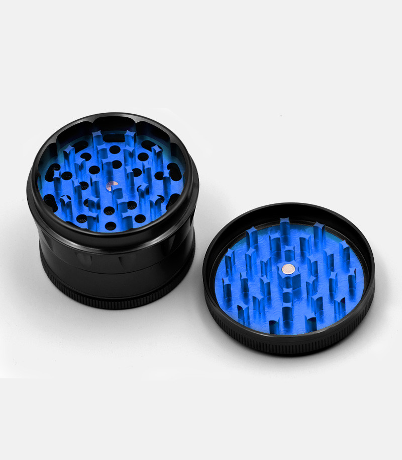 Металлический гриндер, состоящий из трех камер, – это оптимальный выбор для измельчения сушеных трав. Секции крашера скрепляются магнитом для герметизации. Диаметр гриндера составляет 63 мм, за счет чего можно приготовить большое количество продукта за один раз. Нижняя секция девайса предназначена специально для сбора самой мелкой пыльцы, которая образуется при перемалывании соцветий.
