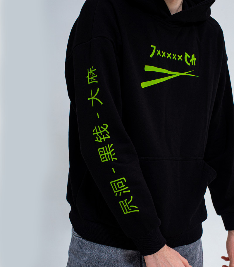 Худи 7CH, иероглифы, черное Россия