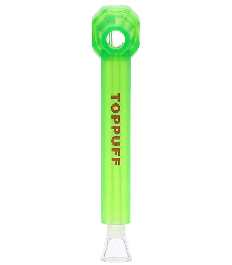 Использовать трубку для бутылки Top Puff предельно просто. Достаточно набрать в бутылку воды, накрутить верхнюю насадку-мундштук и вставить в нее стеклянную трубку. Воды должно быть столько, чтобы нижняя часть стеклянной трубки была в нее погружена. Девайс удобен в использовании и за счет водного охлаждения позволяет сполна насладиться вкусом и ароматом растительного продукта.