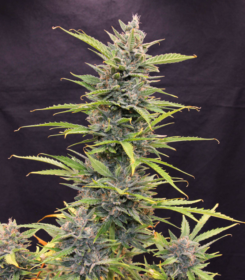 благодаря генам Сативы, раскидистые массивные кусты быстро набирают массу;