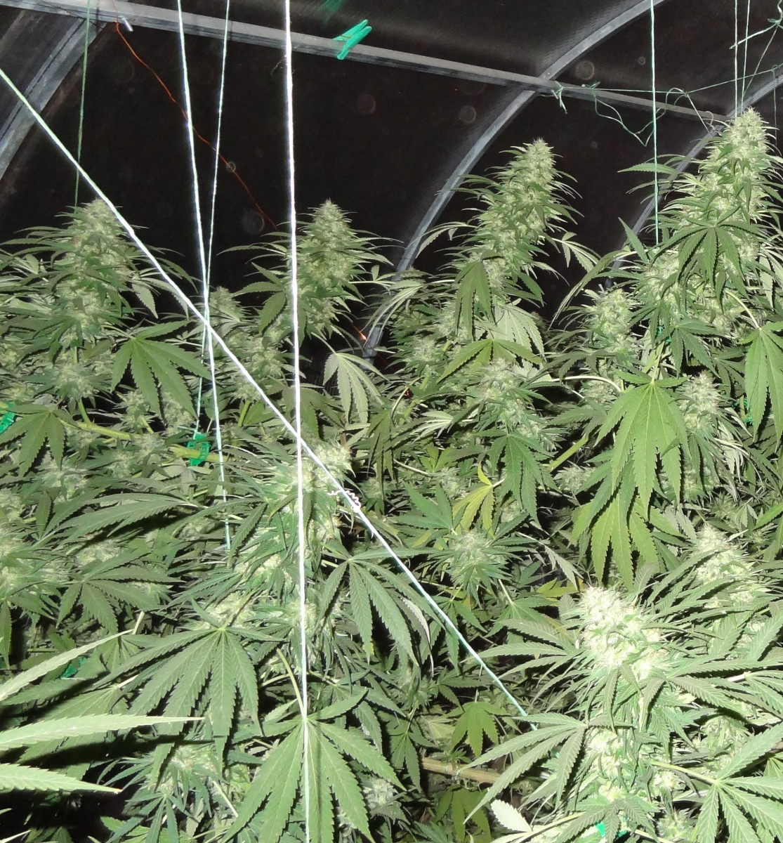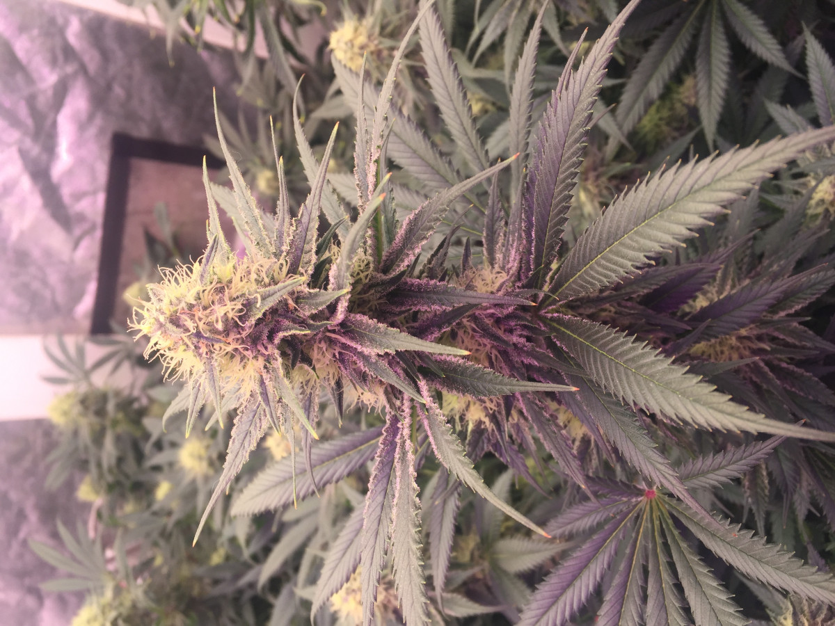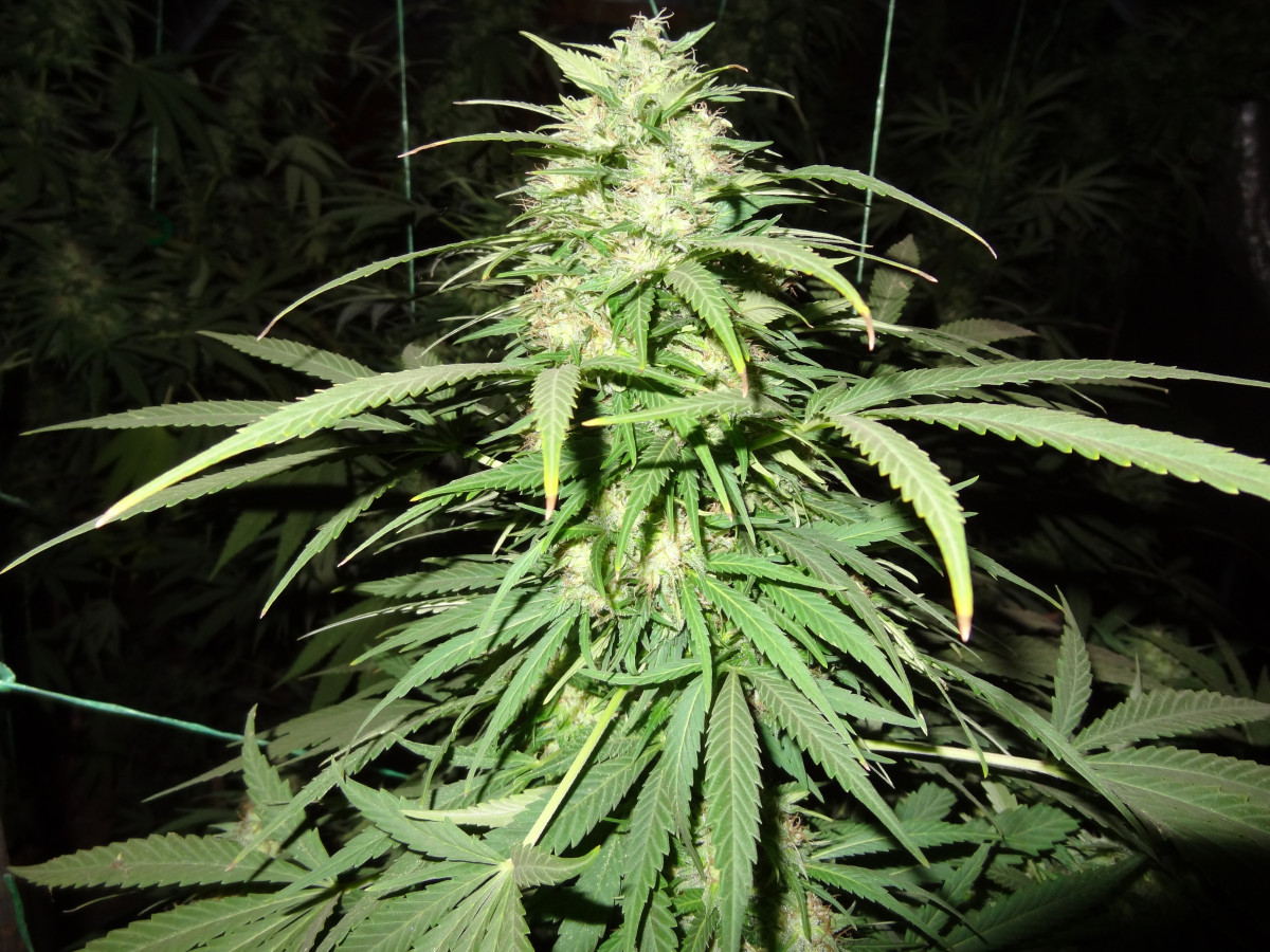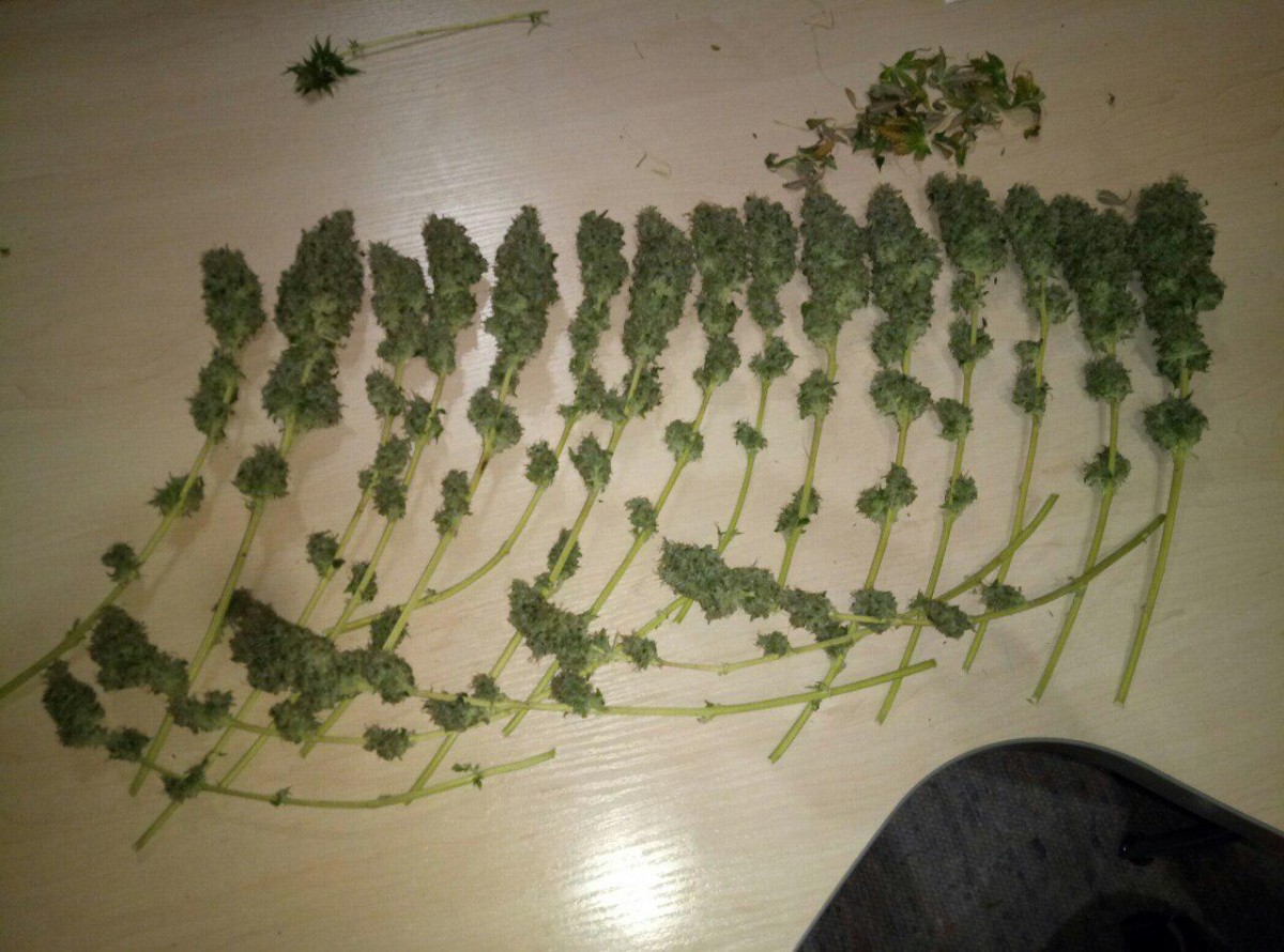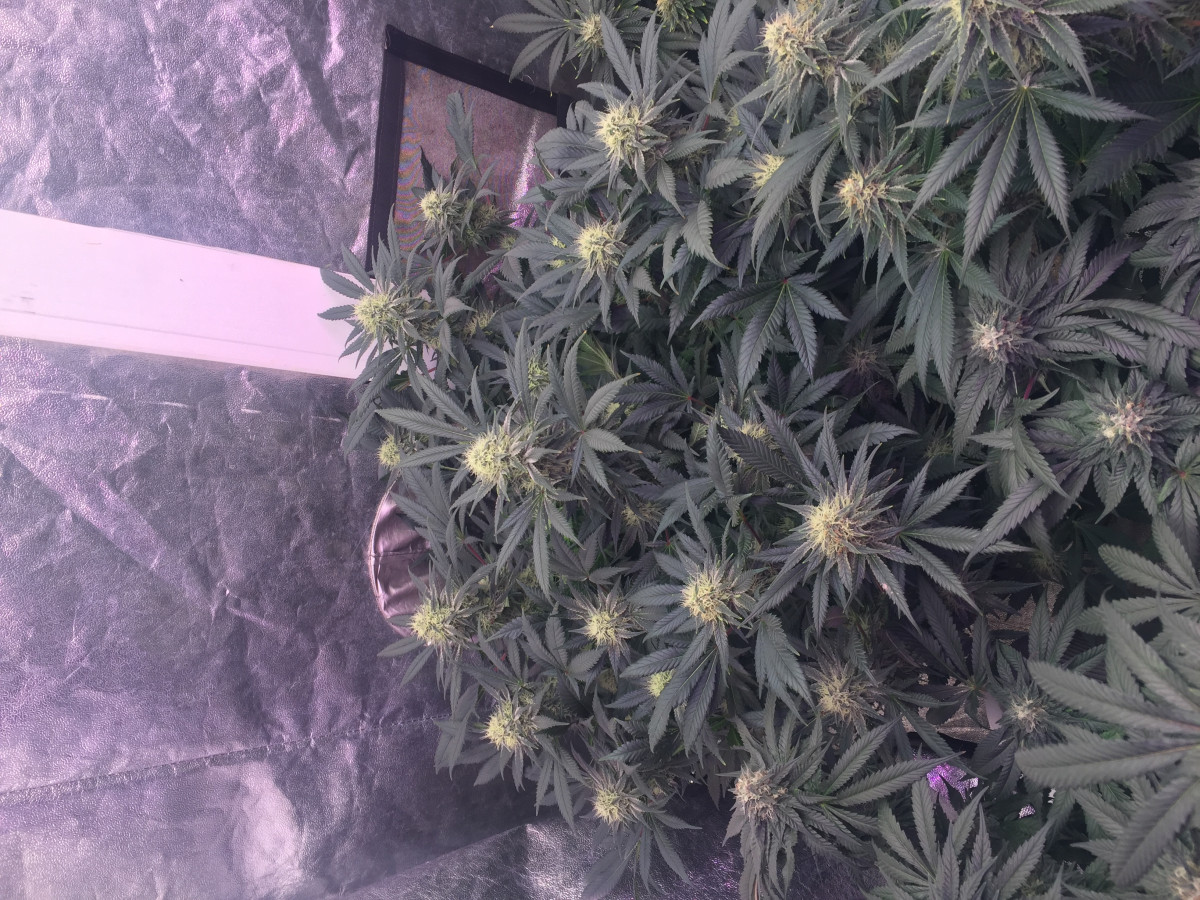 Сразу скажу, что я выращивал куст у себя в шкафу, в своей комнате чтобы меня не спалили родители. Основная проблема моего грова была в повышенной температуре (в среднем 30-31 градус во время всего времени) и низкой влажности на веге. Растил в lightmix от biobizz и поливал удобрениями bio bloom и bio grow от той же фирмы, еще керамзит на дне горшка-мешка(10л субстрата и 2л керамзита). Под дназ 150вт и с двумя вентиляторами и плохо работающим увлажнителем воздуха (влажность больше 45 мне поднимать не получалось). Купил угольный фильтр, но в бокс его ставить не пришлось потому что кустик очень слабо пахнет. Измеритель ph не приобрел, поливал водой, которую сам пью. Отрезал верхушку на 28 дне веге и перевел на цвет. После 30 дня цветения начал подрезать вееры, за пару дней до харвеста подрезал крупные листочки чтобы ускорить будущий маникюринг. Поливать чистой водой стал за 17 дней до харвеста, тупанул немножко.Брил шишки 3 часа, есть еще маленькая баночка сахарных листочков на масло. Сушил 5 дней в картонной коробке потому что в это время в боксе росли еще две девочки (про них позже). И пролечка в стеклянных банках в темном сухом месте с 15 градусами - продолжается до сих пор, уже 42 дня. Итоговые результаты: 92 дня - от каски. 64 дня - цветение. 55 см от земли, 20 здоровых веток и два карлика. 44 гр высушенного урожая Шишки: Это лучшее что я когда либо пробовал. До этого я сталкивался только с ассортиментом гидры правда. Но особенно после пролечки, шишки стали прям по настоящему классными. Очень воздушные. На фотографии видно идеальный белый пепел, вкус очень мягкий, с вапора еще лучше заходит. Запах у шишек острый, но не очень сильный, в целом отличный. С цитрусовым, свежим вкусом, из холодной банки прям вах, чувствуются нотки муската и мяты. Приносит яркое психоделическое воздействие. Arizer air 2 (вапорайзер) дает приятный, стимулирующий эффект. Заходит весь день очень хорошо, что с утра, что перед сном. Аппетит стимулирует лично у меня любой сорт и belladonna с этим тоже отлично справляется. Сейчас у меня растут еще две дамы, их я посадил за 16 дней до харвеста рядом с большим растением. Как вы поняли в режиме 12/12 от проращивания. Ростки были очень слабые первые две недели, но уже на третьей показали пол. Сейчас на 48 дне от каски растут + 2-4 см в день. Пока рано выносить вердикт способу 12/12 от рождения, но мне пока кажется, что не надо было тратить на него две полноценные семечки. В целом, отличный сорт, особенно людям, которые не могут позволить себе сильный запах.