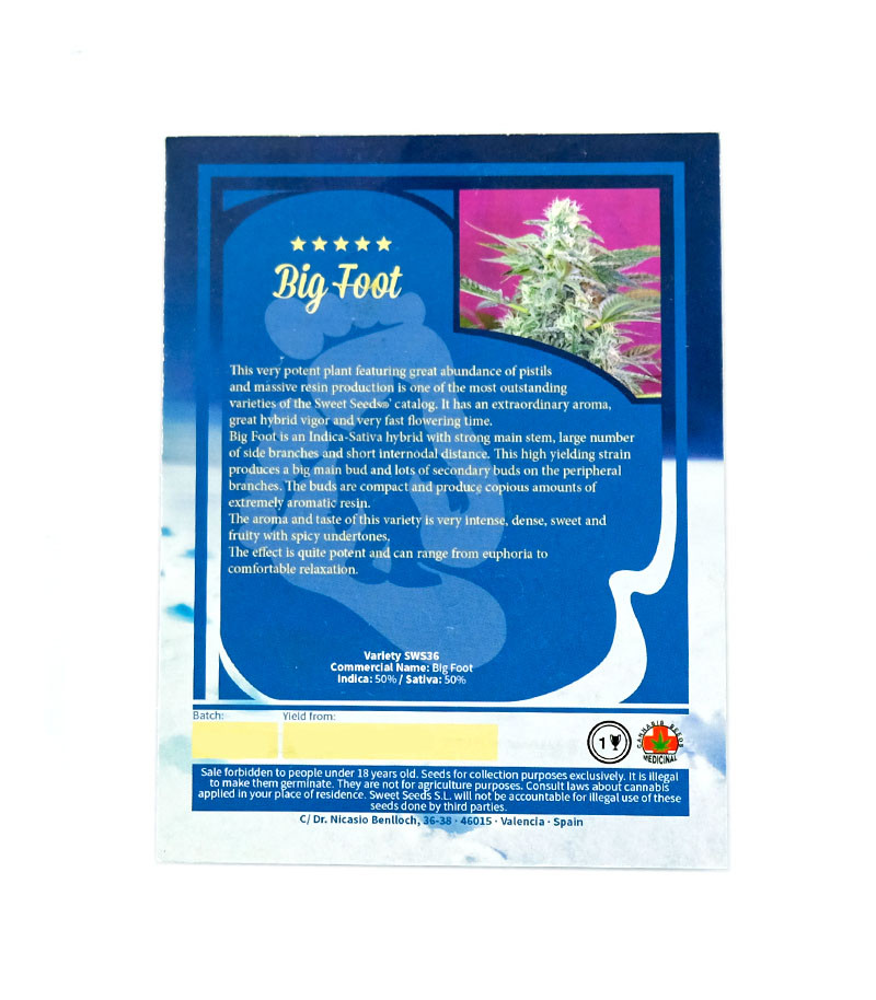 Семена сорта Big Foot fem (Sweet Seeds) Испания, Феминизированные, Фотопериодные, ТГК-18 - 22