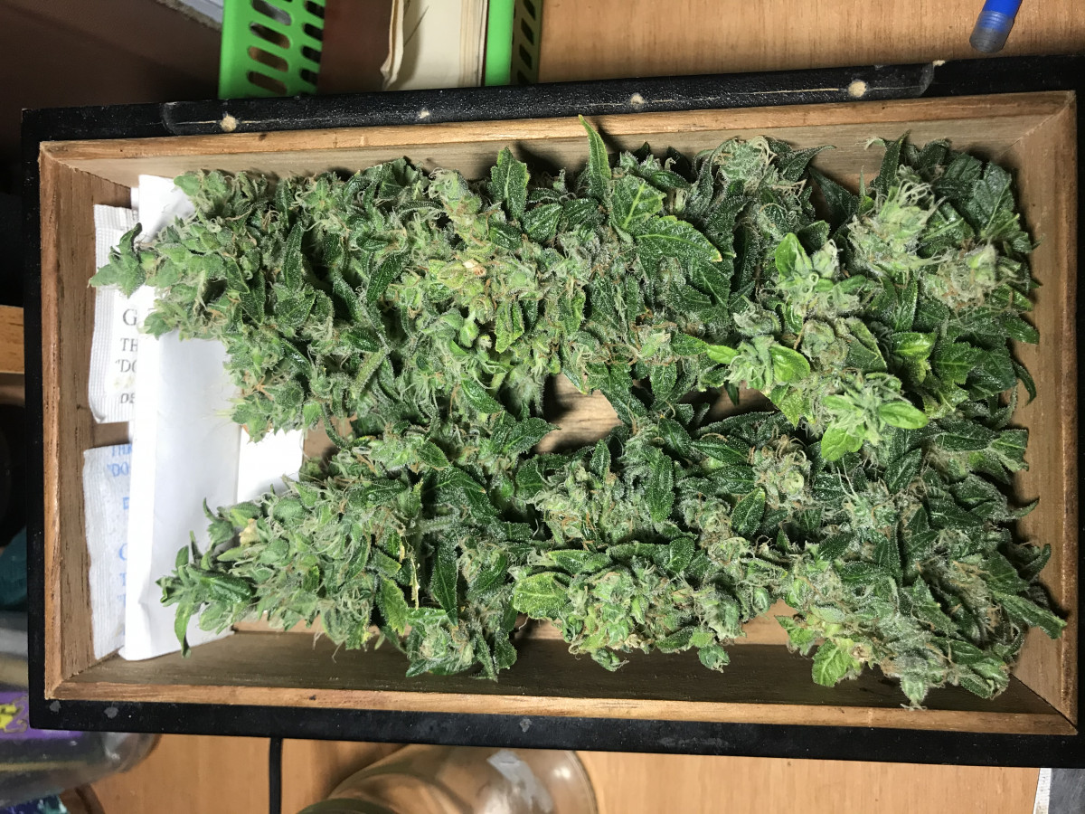 3) Урожайность порадовала, (стелс25х25х40, днат100, тепма/влага всегда в норме, горшек 3л. кокос, гхе коко) до этого сортца больше 30г в сухом не выходило в моей коробки, этот же вызрел почти на 50г точно! плюс что было съеденного пока рос)) делал двух этапный харв!