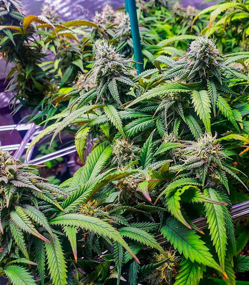 если пространство для культивации небольшое, то лучше применить технику LST или натянуть сетку ScrOG, чтобы на этапе цветения не было проблем с высотой кустов;