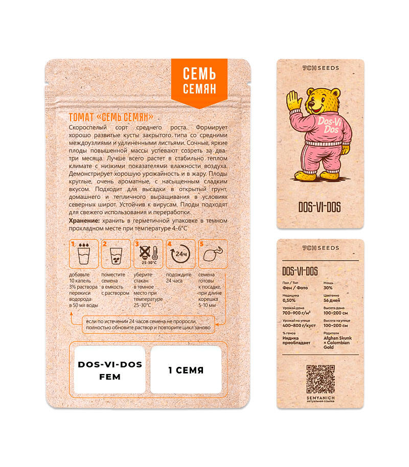 Dos-Vi-Dos — мощный индичный гибрид с ТГК до 30 %, коротким цветением (56 дней) и урожайностью до 900 г/м² в индоре. Аромат — сладко-землистый, эффект — расслабляющий стоун с мощной эйфорией. Прост в выращивании, стабилен, устойчив. Идеален для отдыха и снятия стресса.