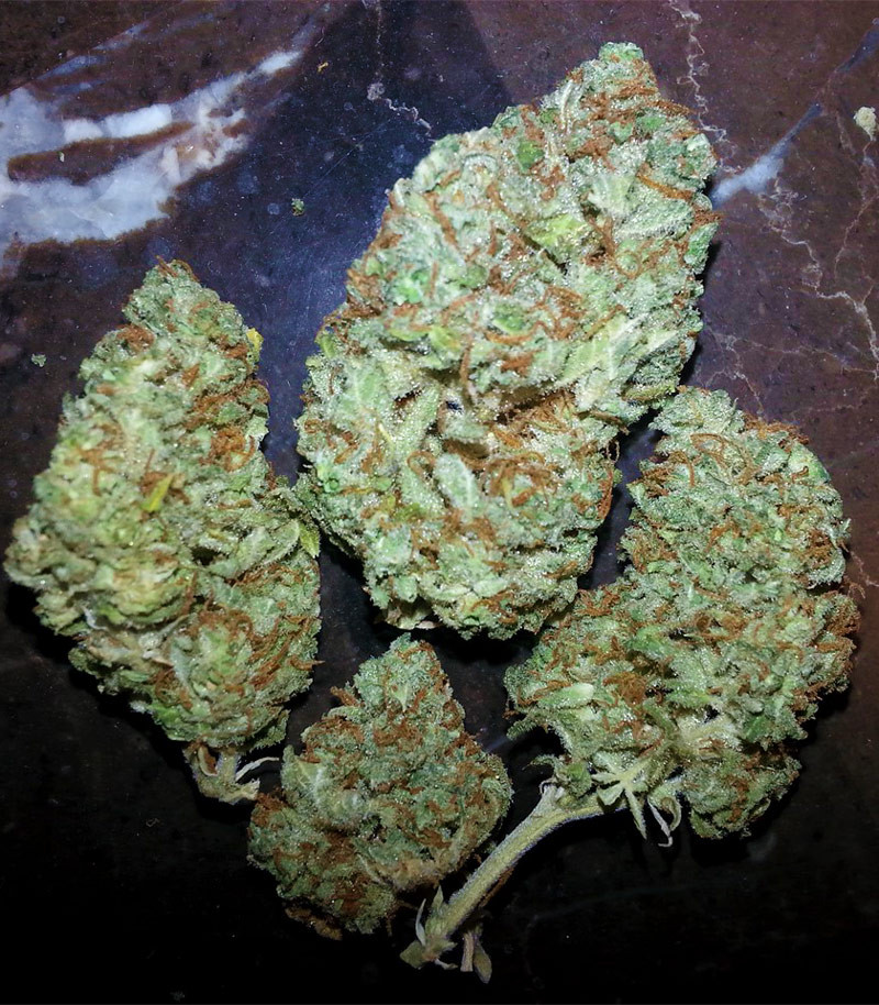 Объемные конусовидные шишки растения, будто слоем сахара, обильно покрываются трихомами и щедро выделяют смолу. С учетом выхода в 750-900 г с куста в условиях открытого грунта можно легко позволить себе отложить половину стаффа для экстрагирования, а потом месяцами наслаждаться ароматным густым дымом с самым широким терпеновым профилем.