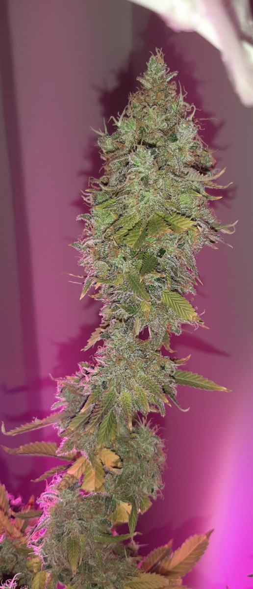 Развитие у сорта интенсивное, в 3 недели все растишки уже достигли по росту 20 см, а с 6 недели вообще выстрелили, как только я переключил таймер в режим 12/12. К 10 неделям рост прекратился и пошло наращивание шишек, а также бокс заполнился удивительным топливно-ягодным ароматом.