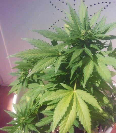 Maxi GoM – растение с активной прибавкой высоты в фазе цветения (дорастает до 50см в помещении и до 150 см на улице), быстрым периодом созревания, огромной центральной колой и развитыми боковыми ответвлениями. Соцветия накануне созревания стремительно набирают массу, поэтому ветви нужно подвязывать. Без поддержки не избежать перелома центрального соцветия. Шишки жесткие и сплошь покрыты белесым налетом смол.