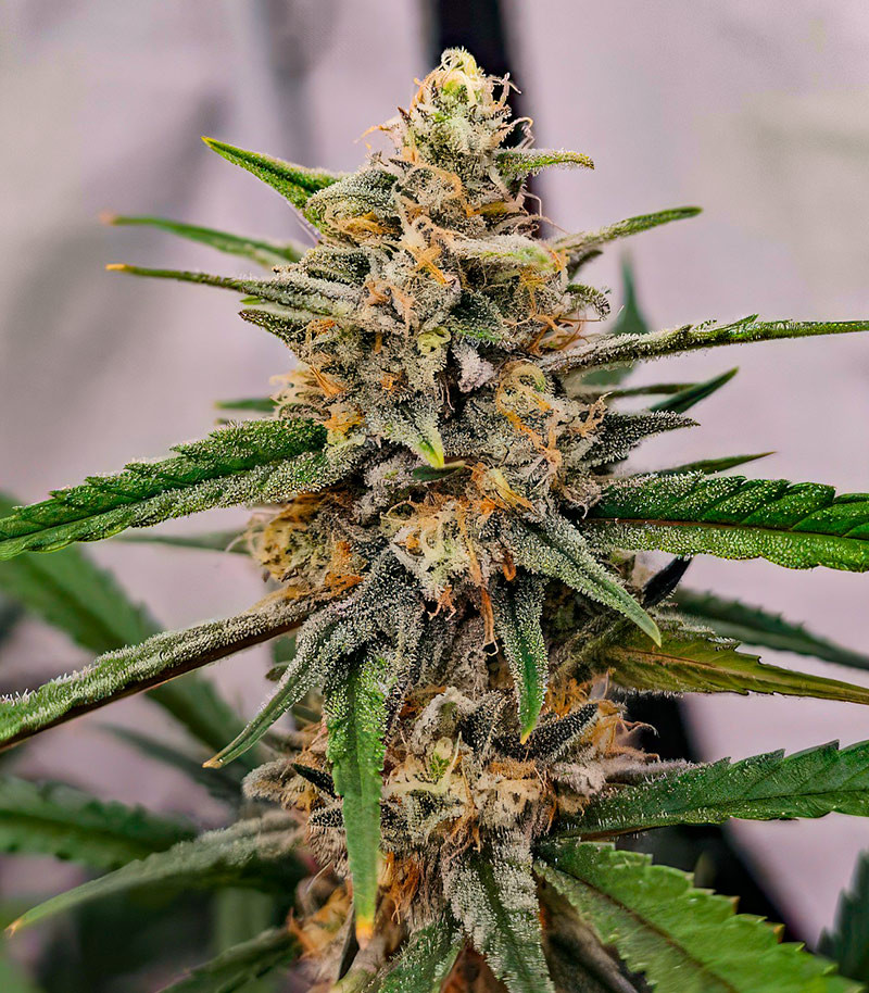 Бутоны данного сорта плотно сложенные, округлые и достаточно компактные. Но, как мы знаем, в гровинге размер не всегда имеет решающее значение. Этот недостаток с легкостью компенсирует ковер из трихом, который полностью покрывает не только чашечки соцветий, но и прилегающие листья. Ближе к концу цветения у некоторых растений появляются красивые синеватые и фиолетовые оттенки. Причем возникают они не из-за воздействия низких температур, а просто как особенность пигментации сорта.