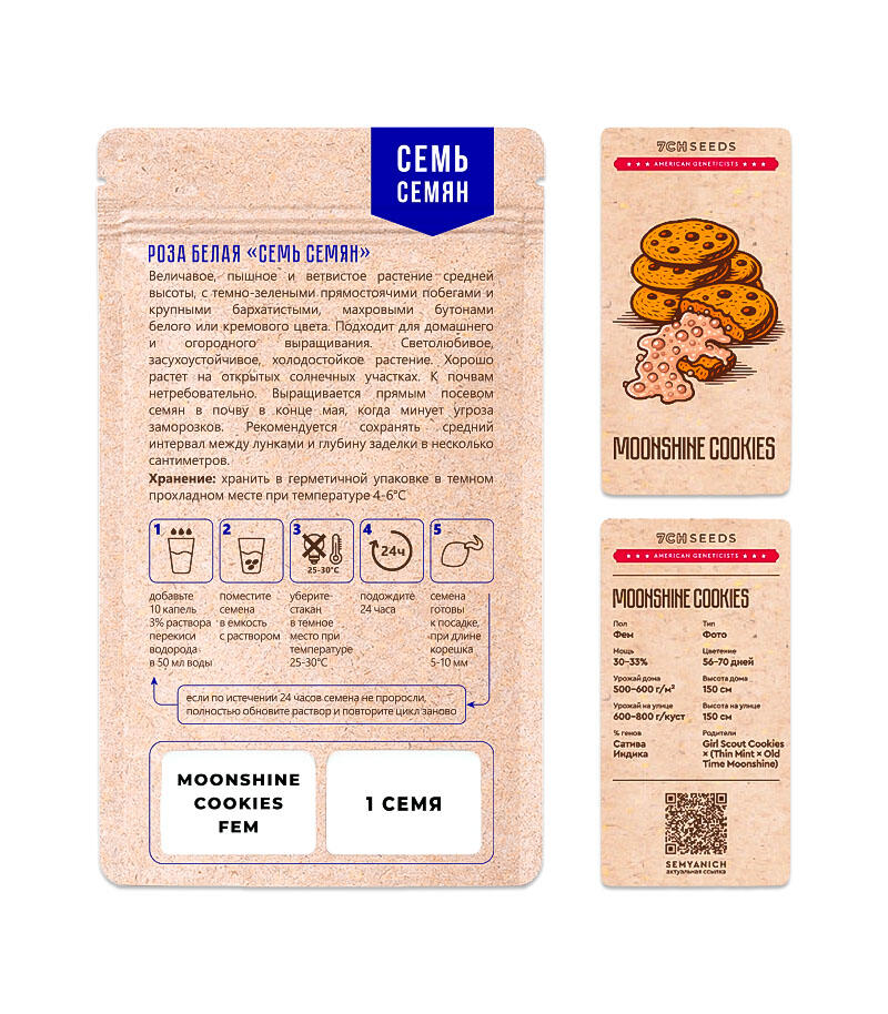Сорт конопли Moonshine Cookies был получен путем скрещивания настоящего американского хита Girl Scout Cookies и гибрида двух уникальных генетик Thin Mint и Old Time Moonshine. Масштабная работа, строгий отбор и применение передовых техник селекции позволили собрать самые лучшие качества всех родителей в одном растении. Полученный гибрид представляет собой энергичный, надежный и простой в выращивании сорт с запредельной силой воздействия и, что немаловажно, коммерческой отдачей.