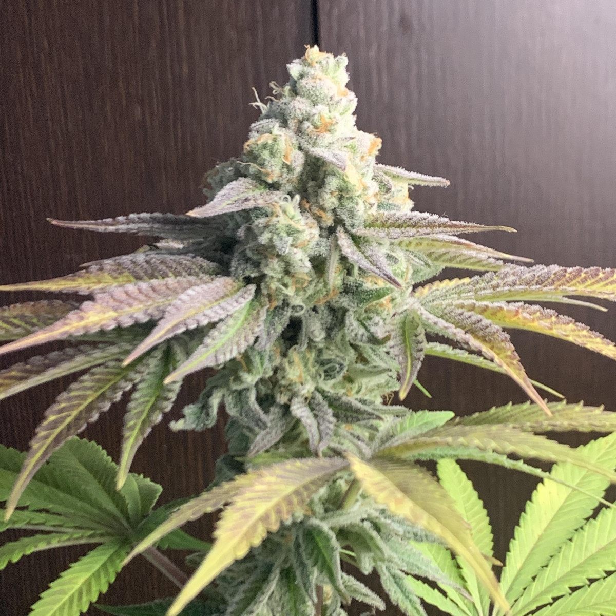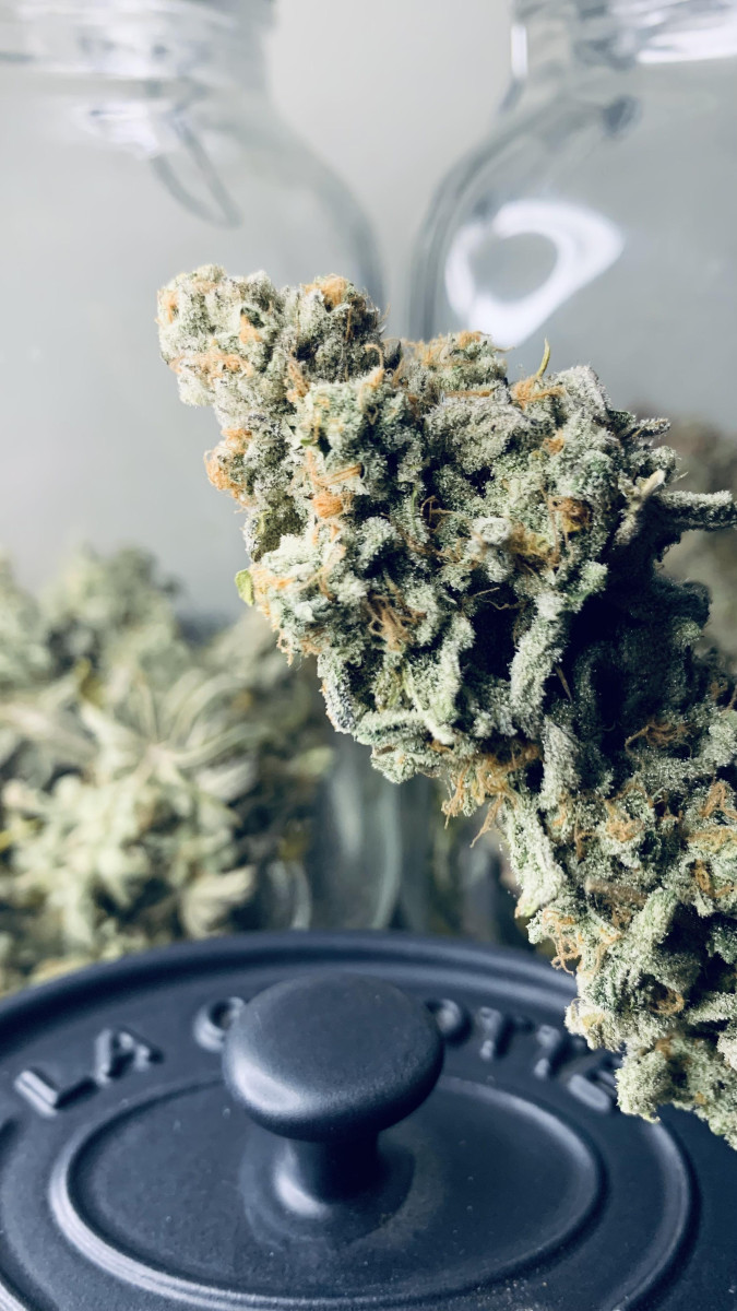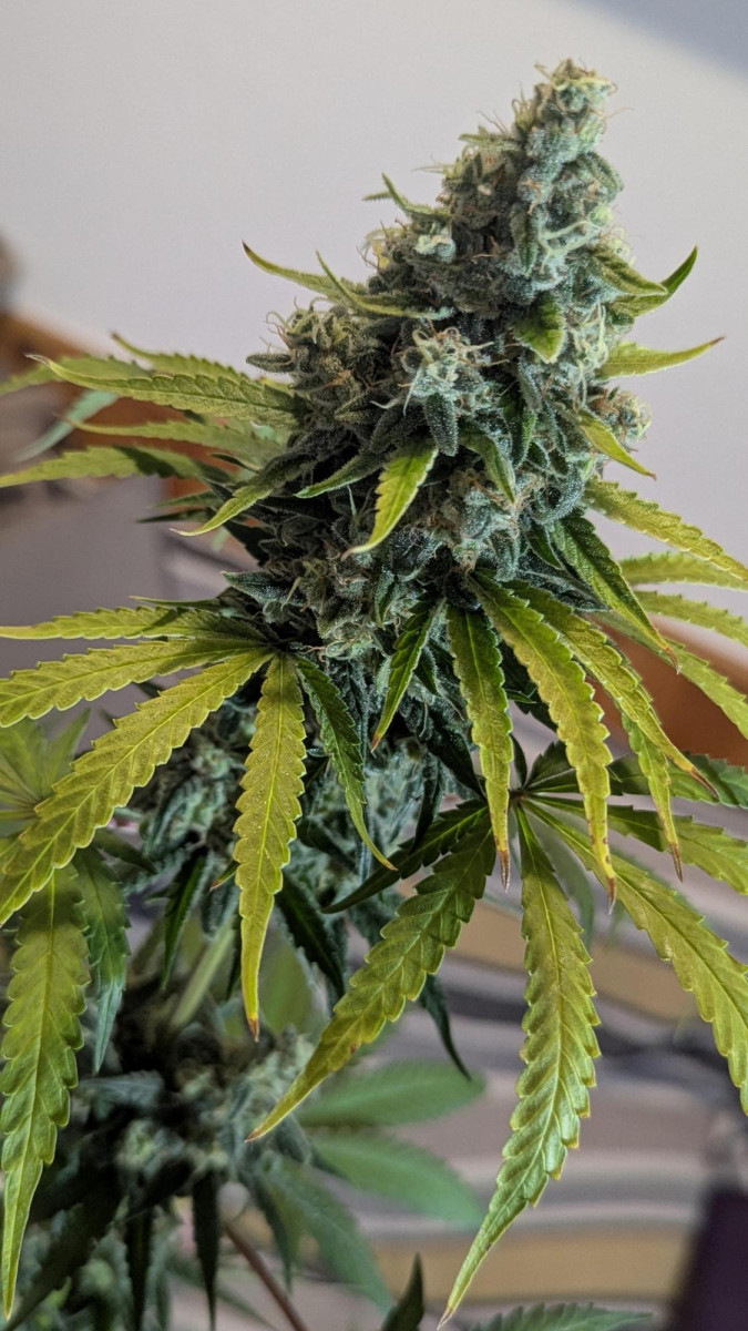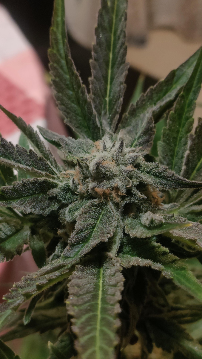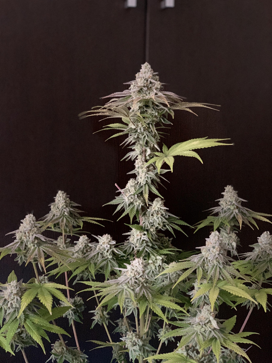 Очень хорошее впечатление о данном сорте. 1. Информация о выращивании: Структура растения: 120 см, низкое процентное содержание листьев, прочные стебельчатые ветви, усыпанные соцветиями. Время цветения 7 недель. Выхлоп 100 грамм. Есть устойчивость к вредителям и плесени. Гров в индоре. Особых требований растение не выдвигало, я провел топпинг и сформировал 8 основных кол, и это оказалось довольно хорошо. 2. Внешний вид: Цвет соцветий и листьев темно-зеленый, с оттенками фиолетового. Плотность шишек повышенная, трихом много, они молочные. 3. Терпены, вкус, аромат – все супер. 4. Сила действия – аналогично, все хорошо.