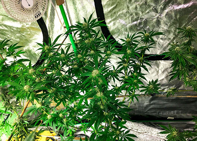 На цветение решил переводить тогда, когда растение достигнет высоты в 50 см, и случилось это на 7 неделе. В 8 недель установил импровизированную сетку. Еще за пару недель куст дорос уже до 70 см. С 11 недели стал добавлять бустер цветения, и масса шишек стала активно нарастать. Вообще сорт прекрасно реагирует на все – на основной питательный комплекс, на свет, на бустеры. Мне даже пришлось сменить систему основного питания, так как старые удобрения закончились, и растиха отлично это перенесла.