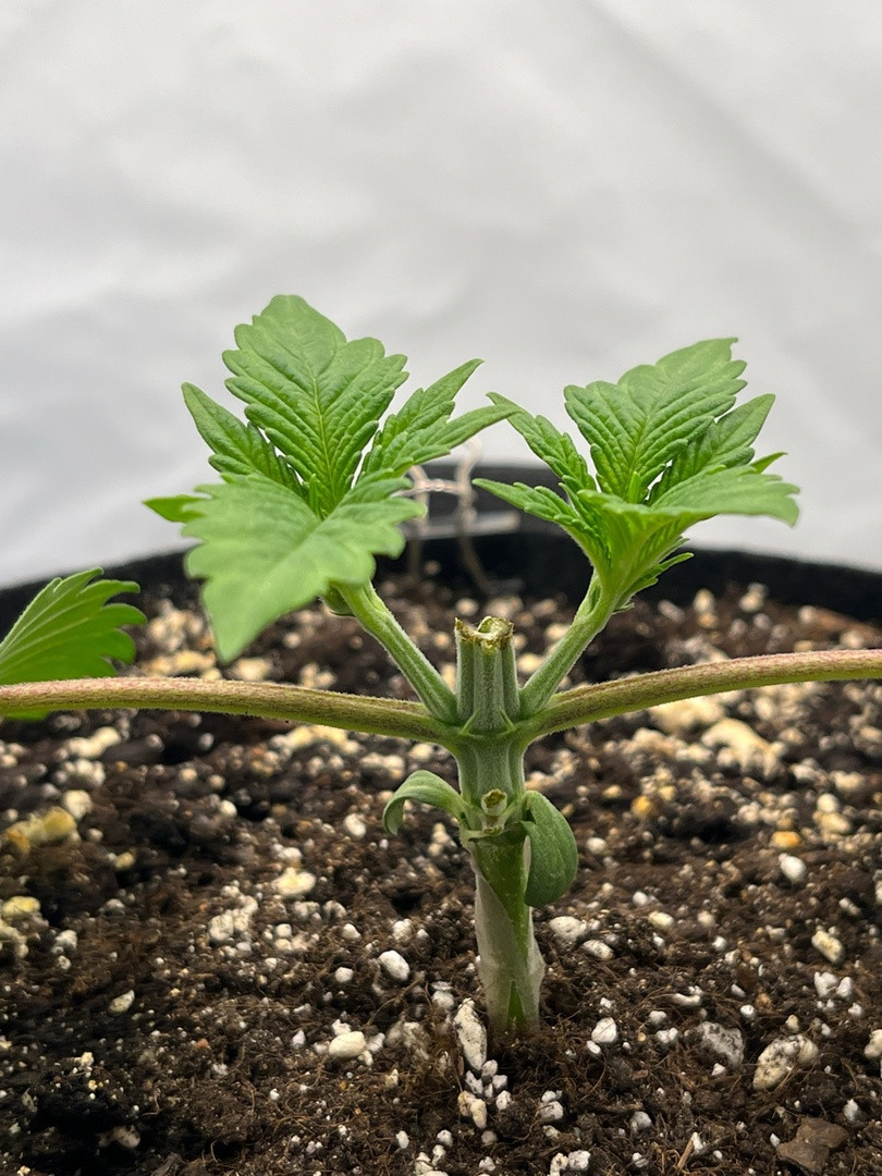 Проращивание, росток – все стандартно и без проблем. Развитие было довольно активным, росток выглядел здоровым и крепким. К 4 неделям это было еще относительное небольшое, но многообещающее великолепие. 5 недель – еще лучше. Тогда же решил переводить уже на цветение. Хватило и недели, чтобы начали завязываться бутоны.
